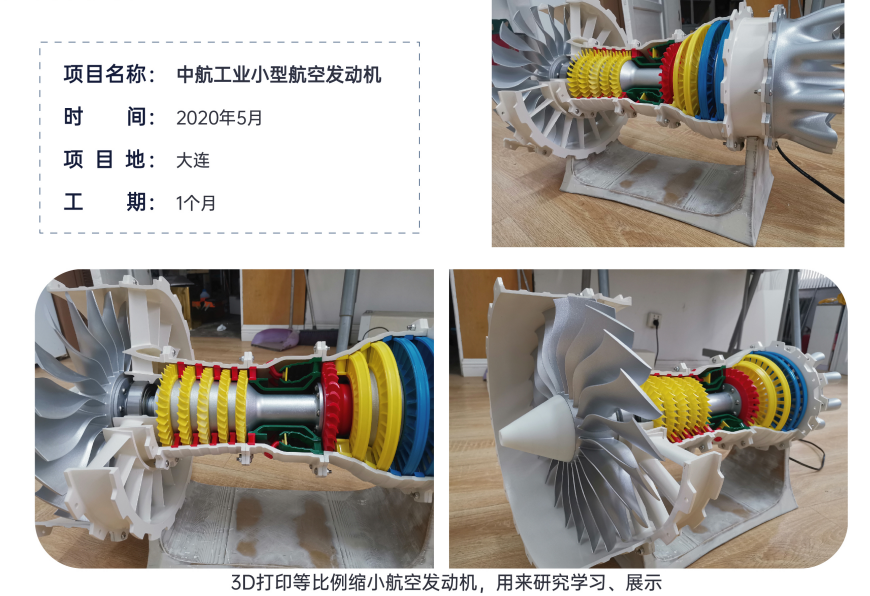 我们为中航”3D打印了航空发动机缩比模型,用于研究、教学与展示。